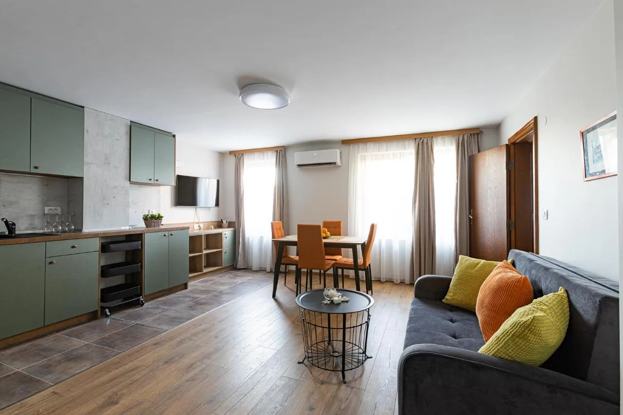 Dimensiuni: 50 mp Numar de camere: 1 camera Featuring a private entrance, this air-conditioned apartment consists of 1 living room, 1 separate bedroom and 1 bathroom with a shower. Meals can be prepared in the well-fitted kitchen, which is equipped with a stovetop, a refrigerator, kitchenware and an oven. The apartment provides a flat-screen TV with cable channels, a washing machine, a seating area, a dining area as well as an inner courtyard view. The unit offers 2 beds.
