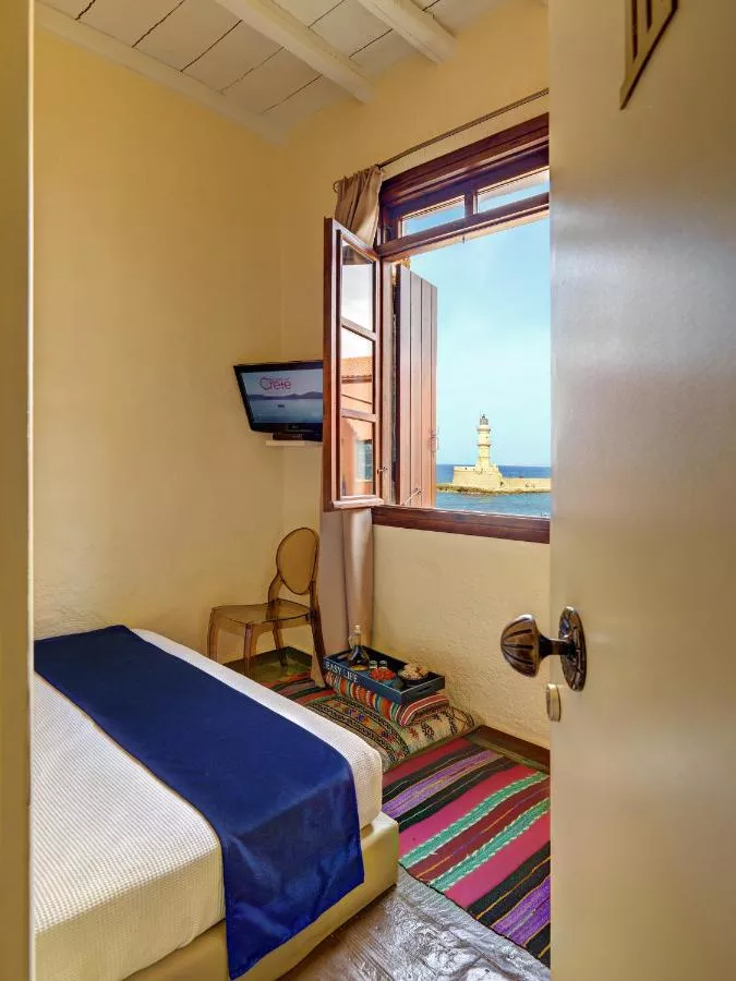 Dimensiuni: 10 mp Numar de camere: 1 camera This room provides a queen size bed, a built-in wardrobe and a bathroom with a shower. It has 2 windows with views of the Cretan Sea and the Venetian Lighthouse.