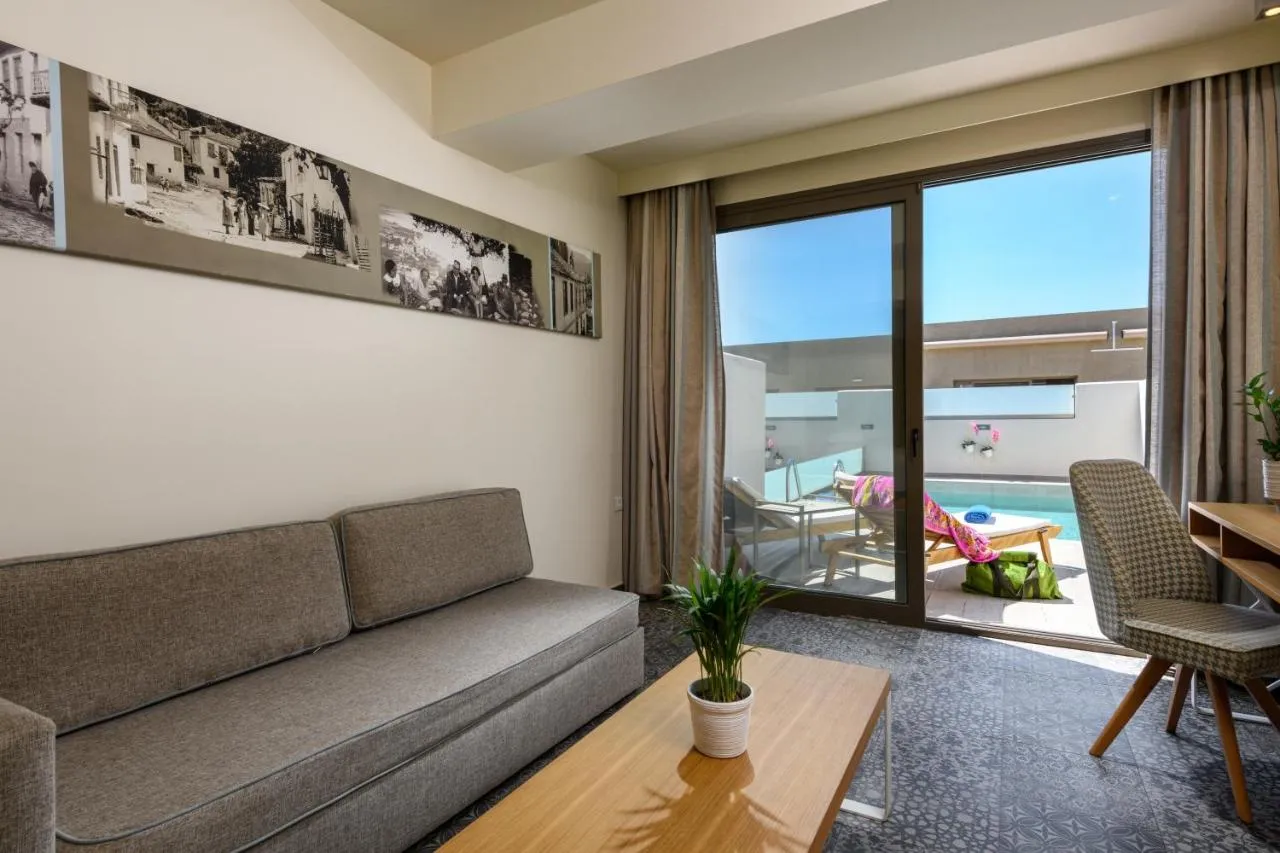 Dimensiuni: 34 mp Numar de camere: 1 camera Această suită decorată elegant are un dormitor cu paturi duble sau twin, zonă de relaxare, duș separat, toaletă, spațiu în plan deschis cu chiuvetă și vedere la mare neobstrucționată. Oaspeții au la dispoziție room service, iar la plajă sunt disponibile șezlonguri gratuite. Facilitățile includ: