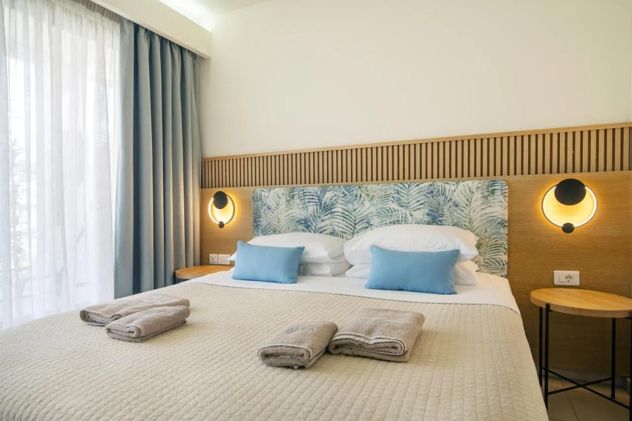 Dimensiuni: 34 mp Numar de camere: 1 camera Suita are aer condiționat, 1 dormitor și 1 baie cu duș sau cadă și uscător de păr. De asemenea, această suită are pereți izolați fonic, TV cu ecran plat și canale prin cablu, minibar și balcon. Unitatea este prevăzută cu 2 paturi. Baie privată cu cadă sau duș