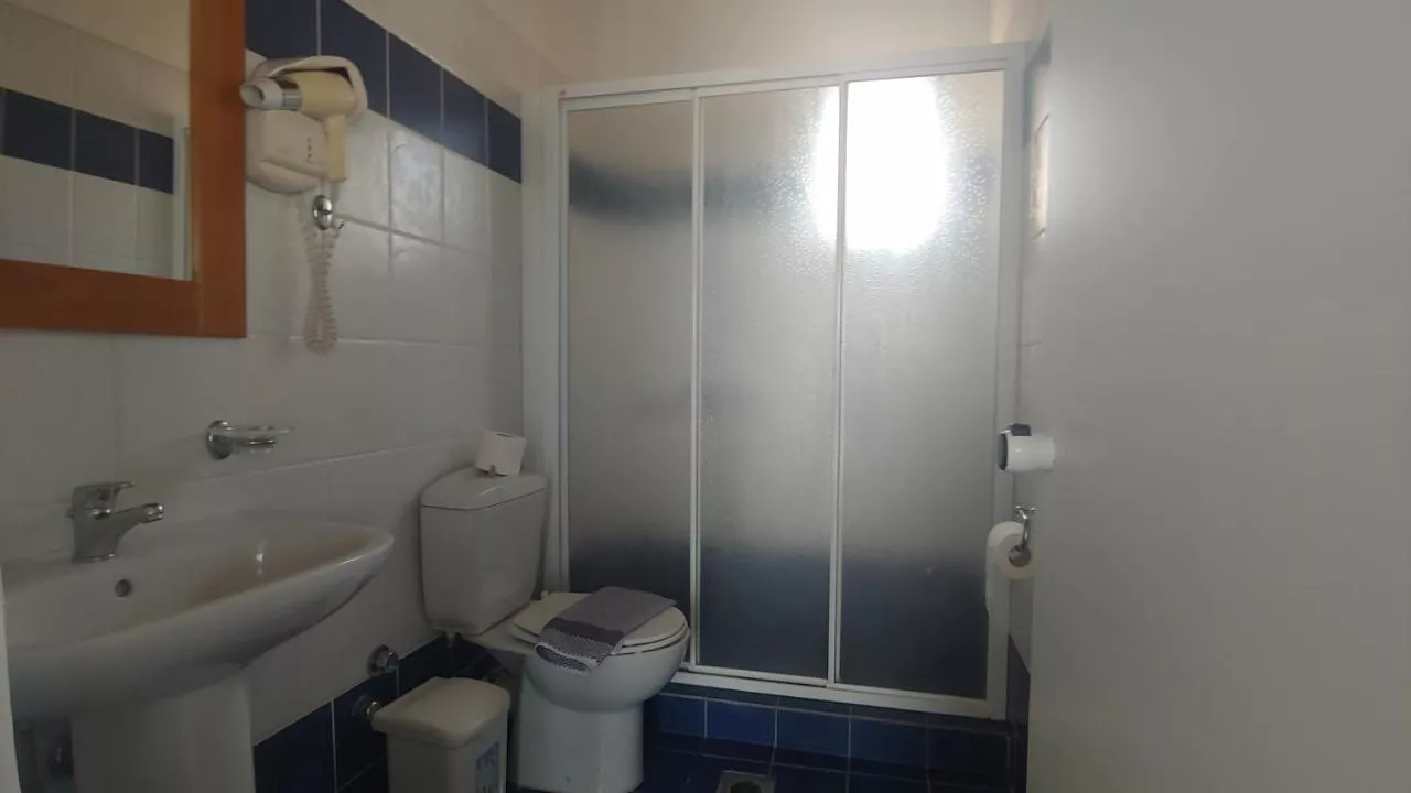 Dimensiuni: 35 mp Numar de camere: 1 camera Located on the 2nd floor, this apartment opens to a balcony with sea view. It has a bedroom with a double bed and a living room with a sofa which converts to two single beds. It also includes a kitchenette, a dining table, and a bathroom with shower cabin. Baie privată cu duș