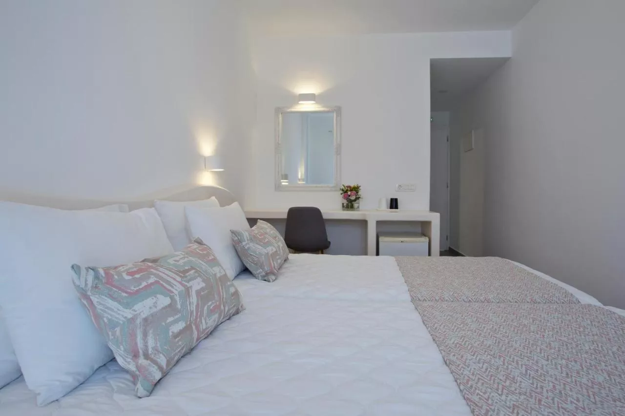 Toate unitățile au acces la un balcon sau o terasă mobilată, cu vedere la grădină, piscină sau Marea Egee. Fiecare include un televizor cu satelit și un frigider. Unele tipuri de cazare sunt cu autoservire.