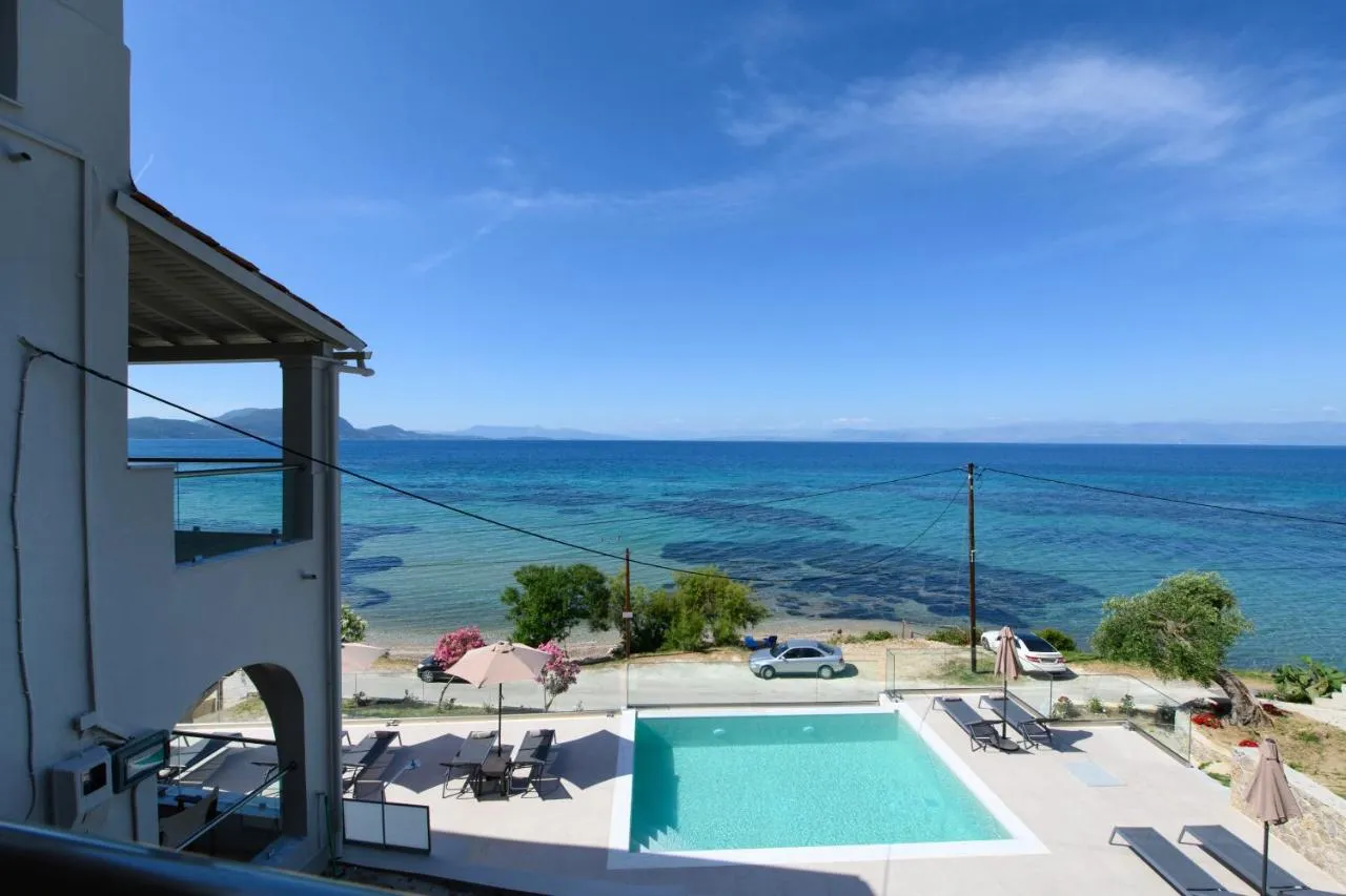 Cel mai apropiat restaurant se află la o distanță de 100 de metri, iar un supermarket la 500 de metri. Orașul principal al Corfuzului, cu clădirile sale vechi venețiene și portul său, se află la 25 km distanță. Este disponibilă parcare privată gratuită.