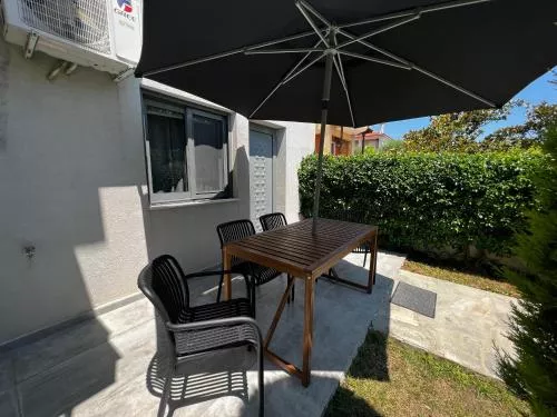 Dimensiuni: 23 mp Numar de camere: 4 camere The air-conditioned apartment has 1 bedroom and 1 bathroom with a shower and a hairdryer. The well-equipped kitchenette features a stovetop, a refrigerator, kitchenware and a microwave. Boasting a terrace with garden views, this apartment also features a wardrobe and a flat-screen TV with satellite channels. The unit has 2 beds. Baie privată cu duș