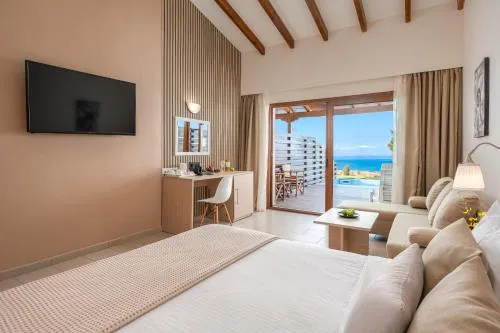 Savurați vinuri fine și bucătărie cu arome autentice grecești în cele 2 restaurante care oferă opțiuni de servire a la carte sau tip bufet. Băuturile și cafeaua sunt oferite la barul de la piscină, în timp ce la sosire este oferit un cocktail de bun venit. Pe locație se află un mini market cu tutun, ziare și necesități de zi cu zi.