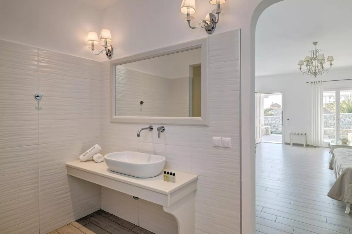 Camerele elegante sunt dotate cu televizor prin satelit și minibar, iar fiecare are o baie spațioasă cu cadă. De pe terasa lor privată, oaspeții se pot bucura de o vedere uluitoare asupra golfului Mykonos.