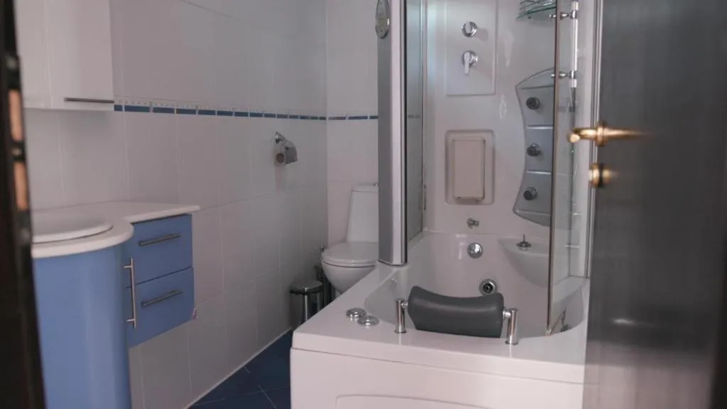 Baie: Cadă spa Halat de baie Toaletă Prosoape Articole de toaletă gratuite Hârtie igienică Cadă Uscător de păr Baie privată