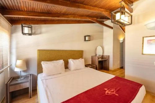 Dimensiuni: 20 mp Numar de camere: 2 camere This room has an interior design blending with oriental Turkish motifs with modern style. Room offers views over Kaleici streets, garden and courtyard. Marble bathroom comes with a whirlpool, bathrobe and slippers.