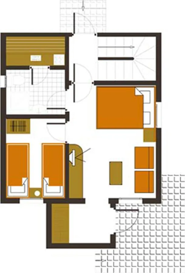 Dimensiuni: 58 mp Numar de camere: 1 camera Chalet with 2 floors. Ground floor - double bedroom - twin bedroom with additional sofa bed, double bedroom - single bedroom - terrace There are 2 flat-screen TVs with satellite channels and free Wi-Fi.