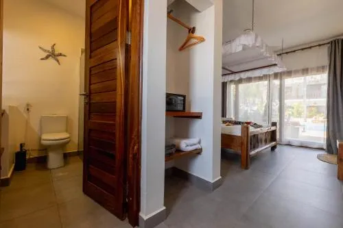 Situat în Paje, la 200 de metri de plaja Paje, Aluna Paje oferă cazare cu piscină în aer liber, parcare privată gratuită, centru de fitness și grădină. Dotat cu o terasă, hotelul de 4 stele are camere cu aer condiționat și WiFi gratuit, fiecare cu baie privată. Oaspeții se pot bucura de preparate africane și italiene la restaurant sau pot savura un cocktail la bar.