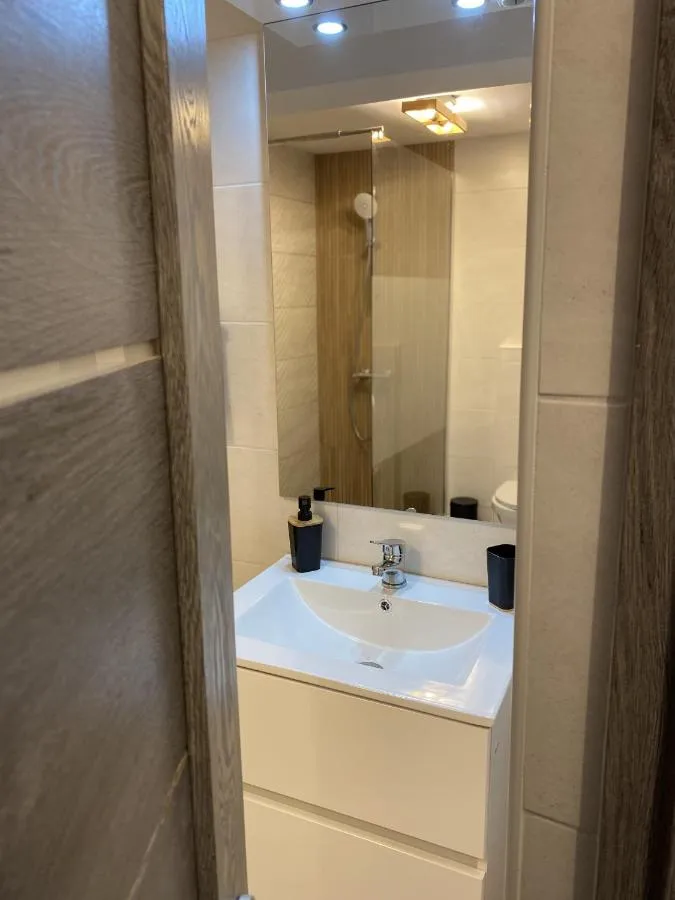 Apartamentul spațios are 2 dormitoare, 1 baie, lenjerie de pat, prosoape, un televizor cu ecran plat, o chicinetă complet echipată și o terasă cu vedere la grădină.