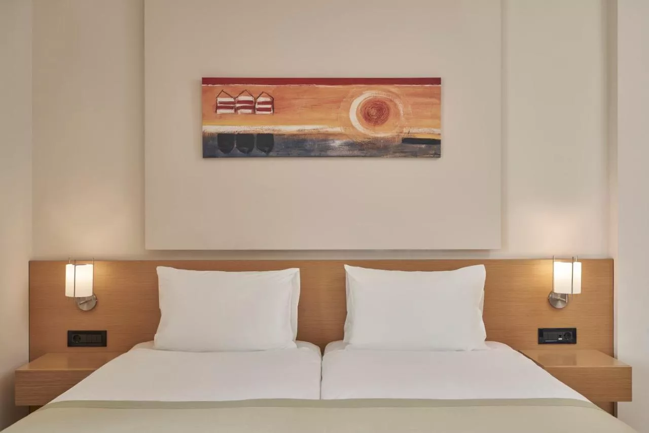 Dimensiuni: 23 mp Numar de camere: 1 camera Această cameră twin/dublă are aer condiționat, TV cu ecran plat și canale prin satelit, baie privată și balcon cu vedere la mare. Unitatea include 2 paturi. Baie privată cu cadă sau duș