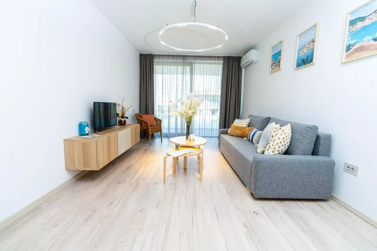Dimensiuni: 60 mp Numar de camere: 1 camera Acest apartament dotat cu aer condiționat are intrare privată, o cameră de zi, 1 dormitor separat și 2 băi cu uscător de păr și duș. Oaspeții își pot pregăti mesele în bucătăria bine utilată, cu plită, frigider, mașină de spălat vase și ustensile de gătit. Apartamentul are pereți izolați fonic, TV cu ecran plat și terasă cu vedere la mare. Unitatea include 2 paturi. Baie privată cu duș