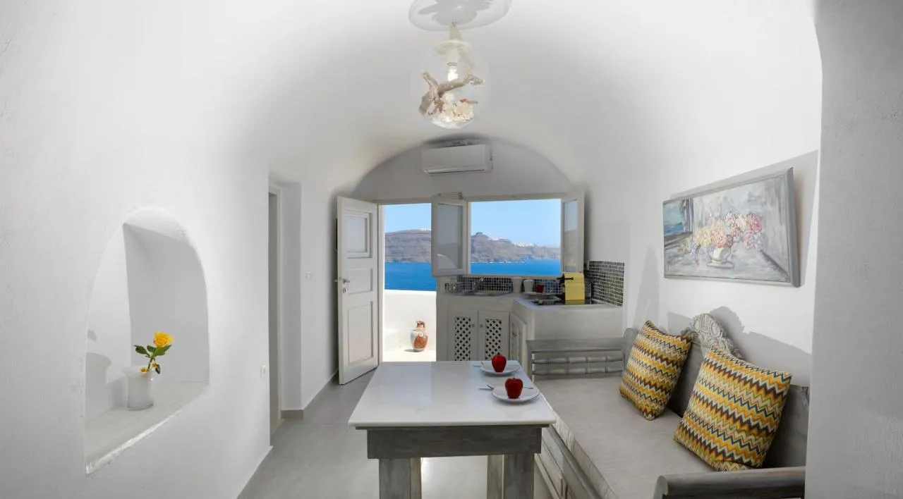 Please note that this villa is located at the entrance of Oia Village, 1 km from Castro Area.