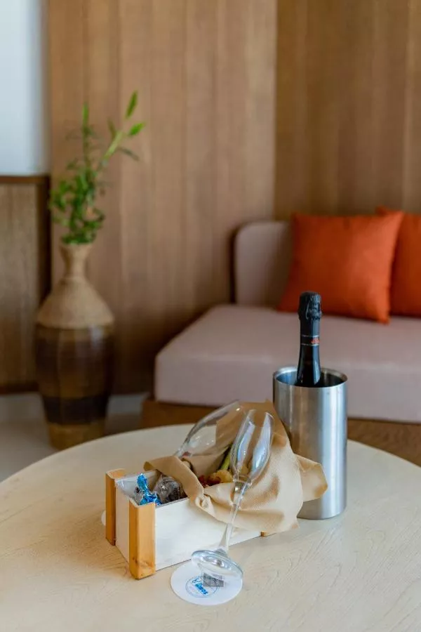 Hotelul oferă oaspeților camere cu aer condiționat, dotate cu un birou, o mașină de cafea, un frigider, un minibar, un seif, un televizor cu ecran plat, un balcon și o baie privată cu duș. La Minos Ambassador Suites & Spa - doar pentru adulți, fiecare cameră este echipată cu lenjerie de pat și prosoape.