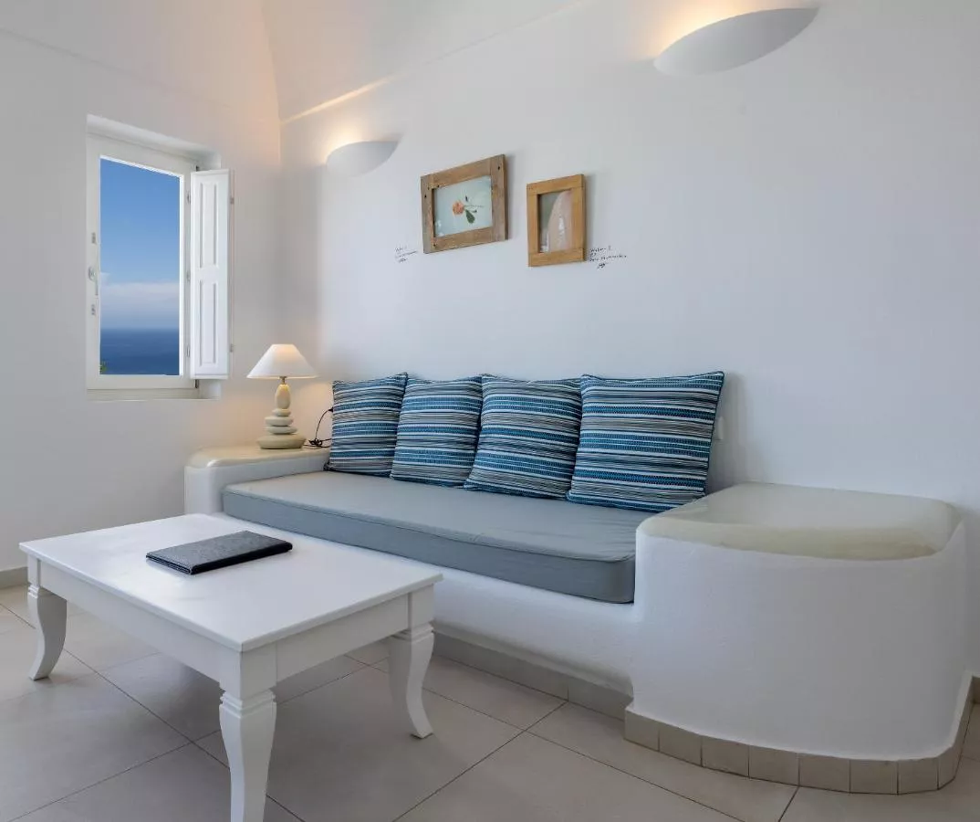 Dimensiuni: 75 mp Numar de camere: 1 camera Această suită decorată cu gust are o cadă cu hidromasaj în aer liber, 2 dormitoare separate, aer condiționat, o terasă mobilată și un patio cu vedere la Marea Egee și la piscină. Unitatea are living cu TV cu ecran plat cu canale prin satelit și minibar. Este disponibil WiFi gratuit. Baie privată cu cadă