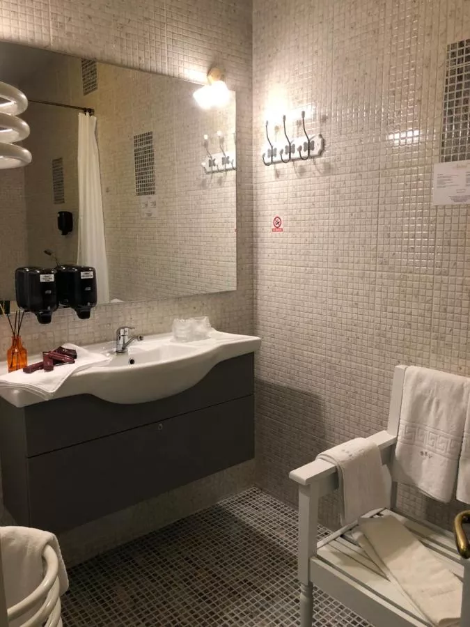 General : Seif Hipoalergică Pardoseală de gresie/marmură Intrare privată Încălzire Izolare fonică Plasă de ţânţari Aer condiţionat Bucătărie: Masă Produse de curățenie Accesibilitate: Etaje superioare accesibile doar pe scări Media/Tehnologie: TV cu ecran plat TV Telefon Canale prin cablu Servicii: Serviciu de trezire Baie: Prosoape Articole de toaletă gratuite Papuci de casă Uscător de păr Prosoape/lenjerie de pat contra cost Toaletă Duş Hârtie igienică Cadă Baie privată Facilităţile camerei: Priză lângă pat Dormitor: Lenjerie de pat Garderobă sau dulap Mâncăruri și băuturi: Minibar Distanțare fizică: Aer condiționat individual pentru fiecare cameră de la proprietate Curățenie și dezinfectare: Dezinfectant pentru mâini