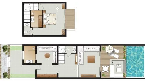 Dimensiuni: 31 mp Numar de camere: 3 camere Camerele Deluxe oferă confort și facilități care stabilesc standardul la Amirandes, cu un bonus, o piscină privată