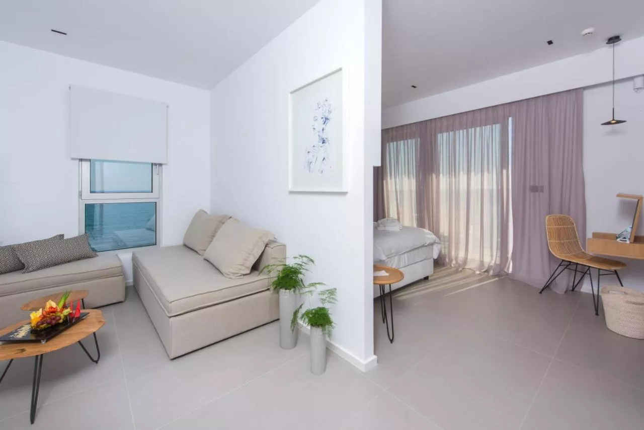 Dimensiuni: 35 mp Numar de camere: 1 camera Această suită are 1 cameră de zi, 1 dormitor separat și 1 baie cu duș tip walk-in și articole de toaletă gratuite. Suita este dotată cu aer condiționat, TV cu ecran plat cu canale prin satelit și o terasă cu vedere la mare. Unitatea de cazare include 2 paturi. Baie privată cu duș