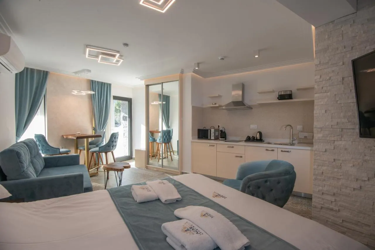 Dimensiuni: 35 mp Numar de camere: 1 camera This suite features a spa bath. Featuring a private entrance, this air-conditioned suite comprises 1 living room, 1 separate bedroom and 1 bathroom with a walk-in shower and a hairdryer. The well-equipped kitchenette features a stovetop, a refrigerator, kitchenware and a microwave. Boasting a terrace with sea views, this suite also provides soundproof walls and a flat-screen TV with cable channels. The unit offers 2 beds.