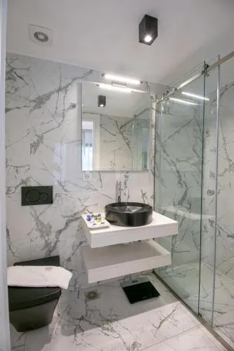 Dimensiuni: 50 mp Numar de camere: 3 camere Featuring a private entrance, this air-conditioned suite is comprised of 1 living room, 2 separate bedrooms and 1 bathroom with a walk-in shower and a hairdryer. The well-fitted kitchenette features a stovetop, a refrigerator, kitchenware and a microwave. Boasting a terrace with garden views, this suite also offers soundproof walls and a flat-screen TV with cable channels. The unit offers 3 beds. Baie privată cu duș