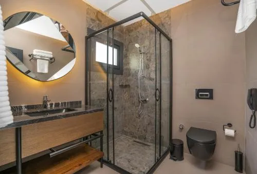 Dimensiuni: 38 mp Numar de camere: 1 camera The spa bath is a top feature of this double room. The spacious double room features air conditioning, a private entrance, a terrace with sea views as well as a private bathroom boasting a shower. The unit has 1 bed. Baie privată cu cadă