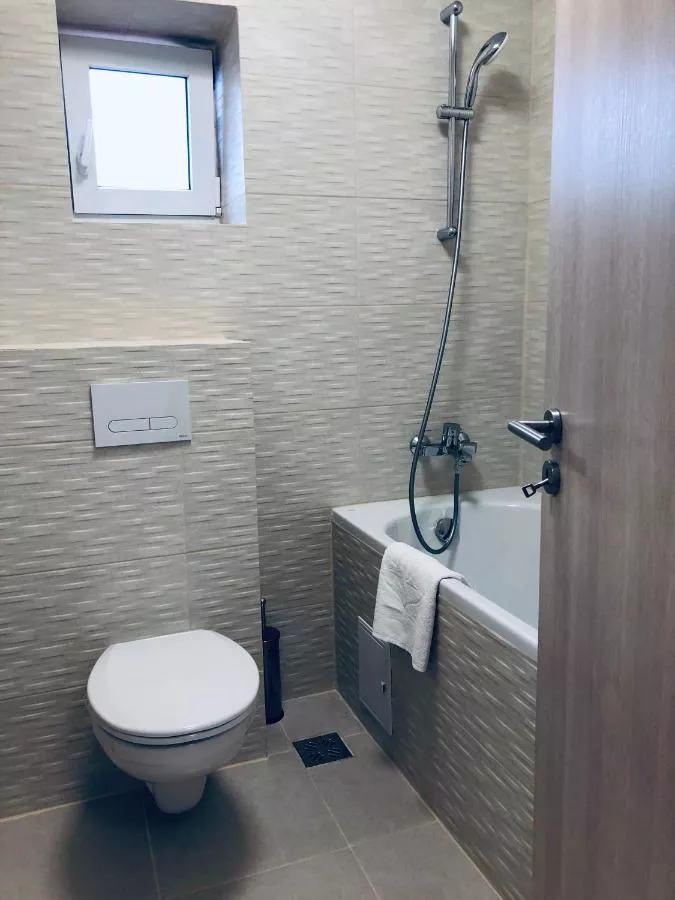 Dimensiuni: 60 mp Numar de camere: 2 camere This apartment features free WiFi, a living room with a sofa bed, a cable TV, a kitchenette with a dining table and a private bathroom with a bath and free toiletries. Baie privată cu cadă