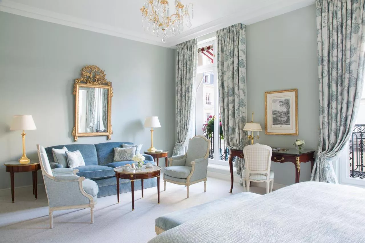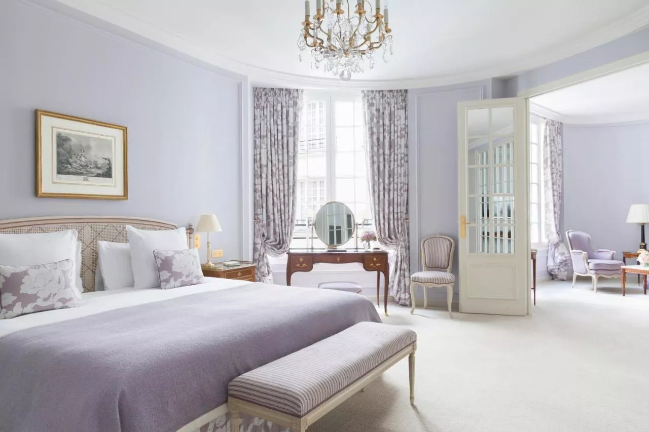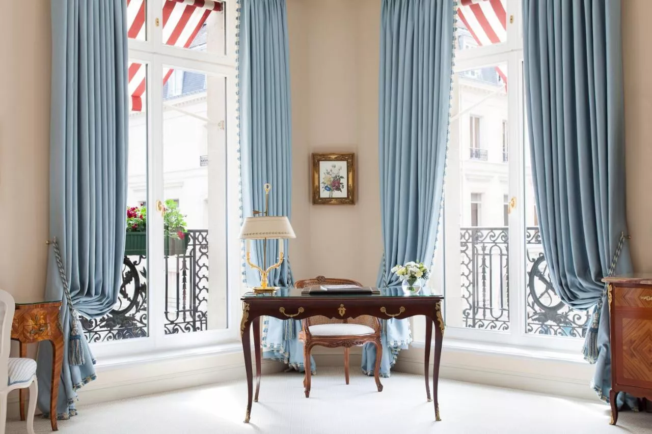 This suite overlooks Rue du Faubourg Saint-Honoré or Paris rooftops.