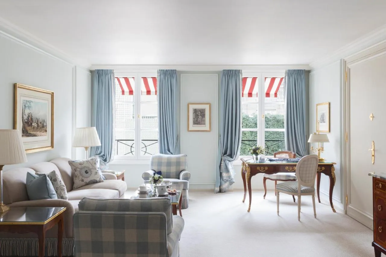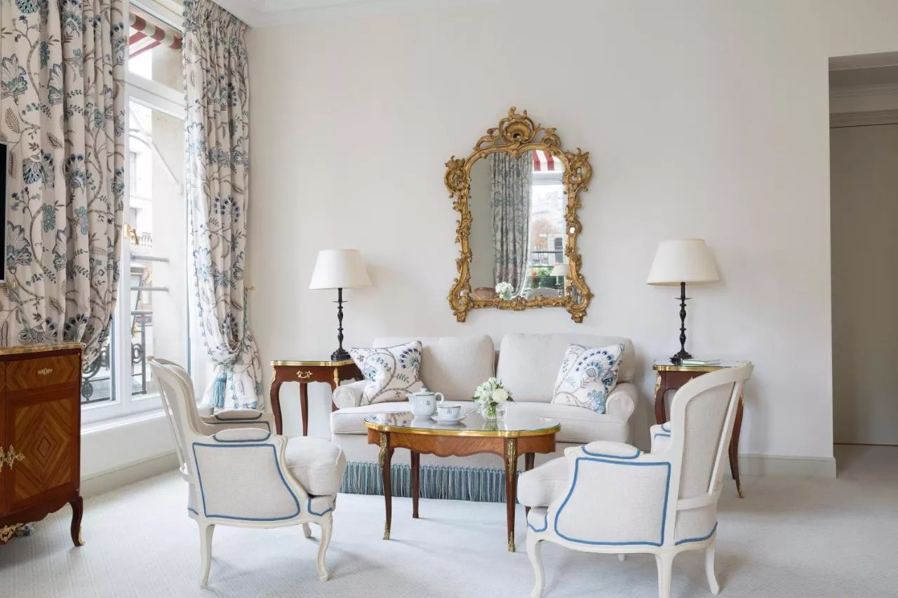 These suites overlook the French style gardens, the hotel's flower-filled courtyard or rue du Faubourg Saint Honoré.