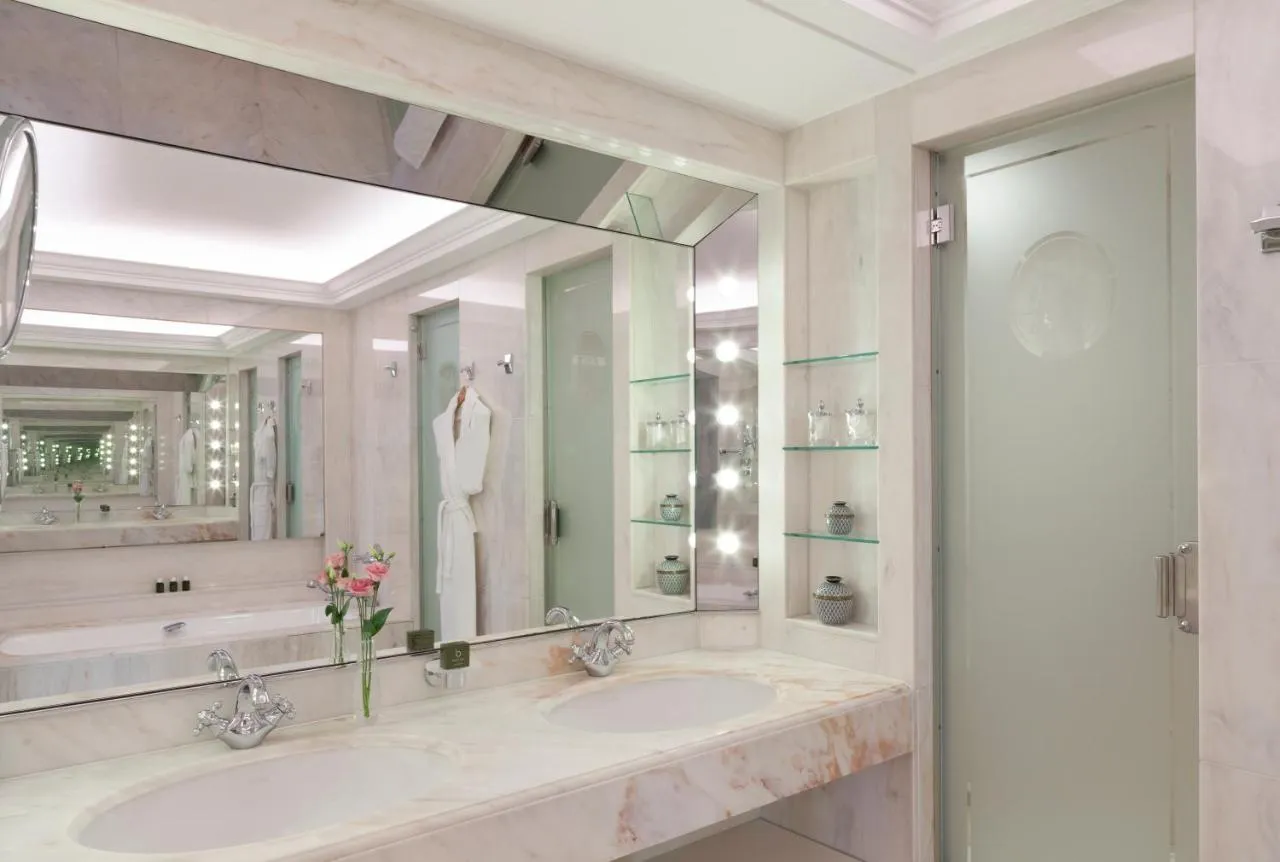 Dimensiuni: 55 mp Numar de camere: 10 camere These suites are decorated with Louis XV or Louis XVI style furniture. Each features a bathroom with a double washbasin, a bidet and a shower.