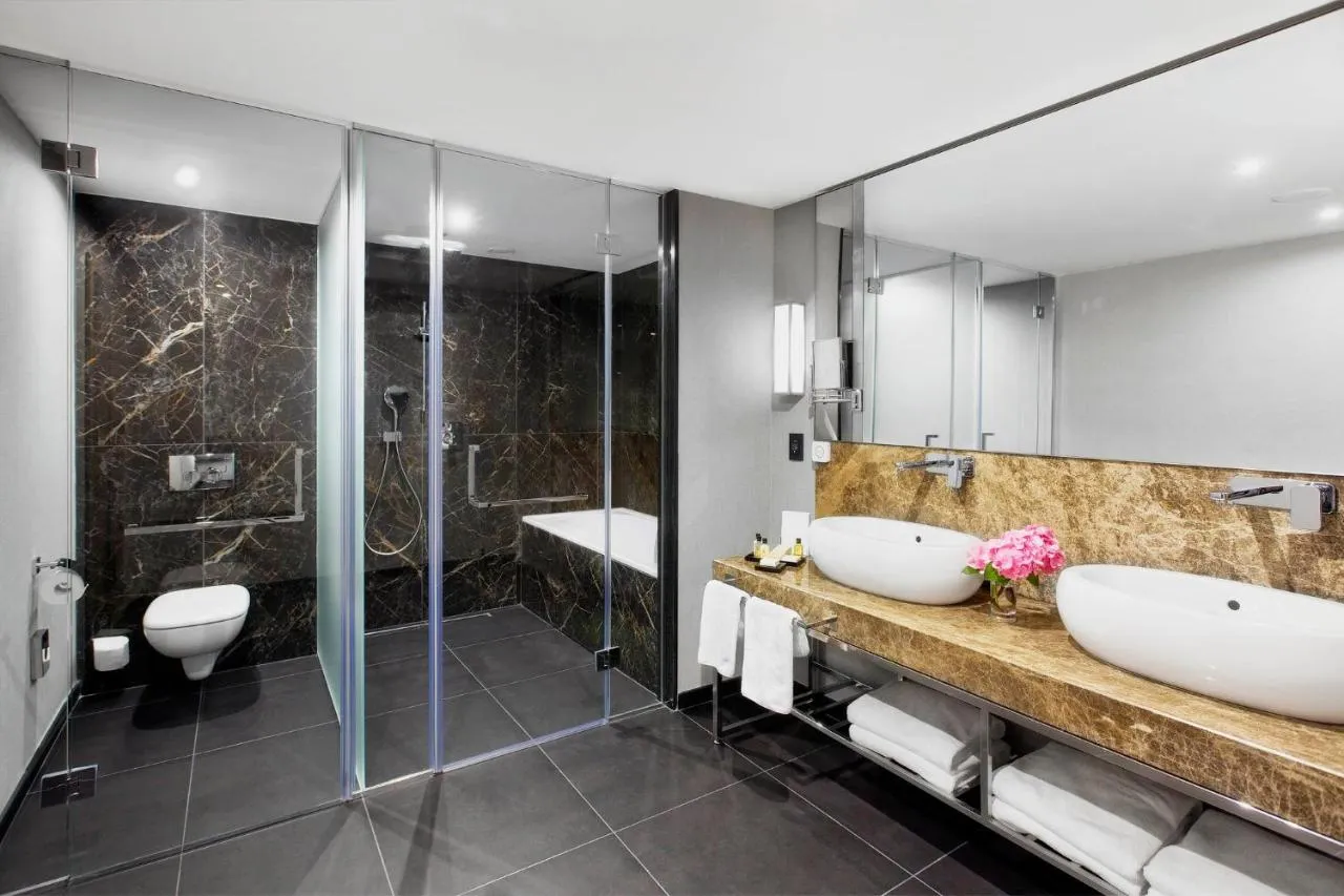 Baie: Halat de baie Prosoape Articole de toaletă gratuite Papuci de casă Uscător de păr Toaletă Duş Hârtie igienică Cadă Baie privată Bucătărie: Mașină de cafea Cană fierbător General : Seif Fier de călcat Facilităţi de călcat Hipoalergică Încălzire Izolare fonică Cameră(e) comunicantă(e) disponibilă(e) Aer condiţionat Accesibilitate: Etaje superioare accesibile cu liftul Media/Tehnologie: TV cu ecran plat Canale cu plată TV Telefon Canale prin cablu Canale prin satelit Servicii: Serviciu de trezire Zonă de living: Canapea Zonă de relaxare Facilităţile camerei: Priză lângă pat Canapea extensibilă Mâncăruri și băuturi: Aparat pentru prepararea de ceai/cafea Minibar Dormitor: Lenjerie de pat Garderobă sau dulap Vedere: Vedere la oraș Distanțare fizică: Aer condiționat individual pentru fiecare cameră de la proprietate