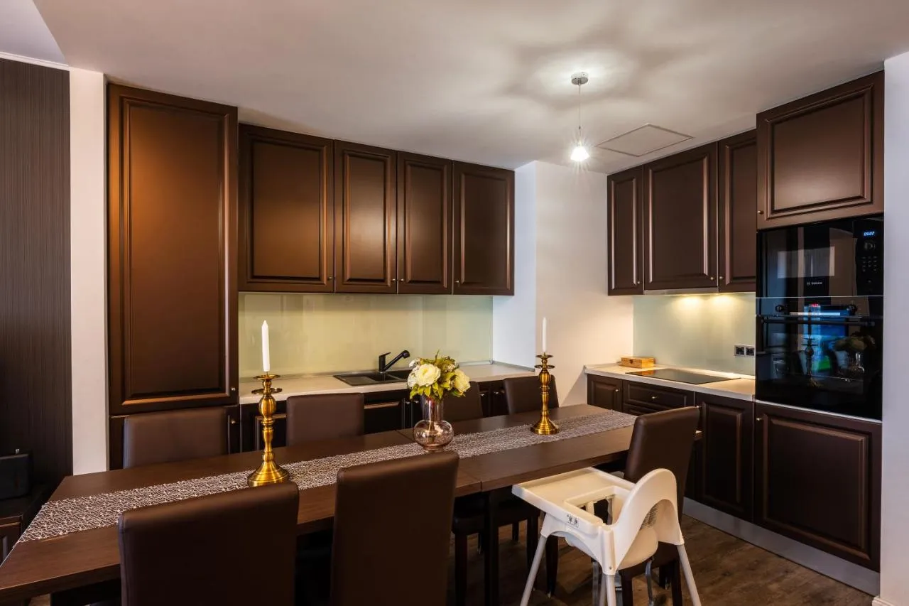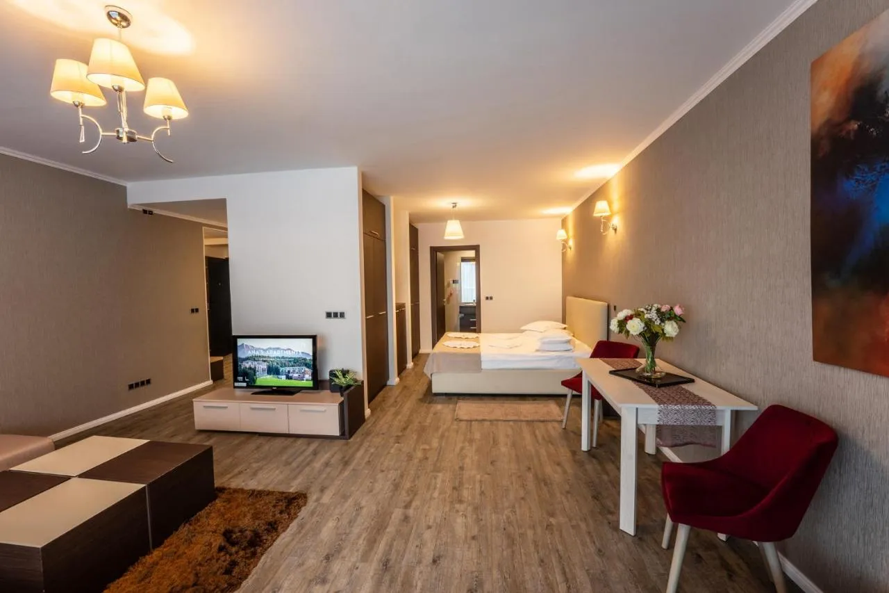 Mic dejun pregătit de sine: La sosire, oferim o varietate de produse complimentare pentru ca oaspeții să își pregătească micul dejun în bucătăria complet echipată a apartamentelor. Aceasta include: pâine locală, lapte, ouă proaspete, selecție de mezeluri, produse lactate, legume și fructe proaspete, unt și gem, precum și băuturi: cafea și ceai, apă plată și minerală, băuturi răcoritoare și vin.