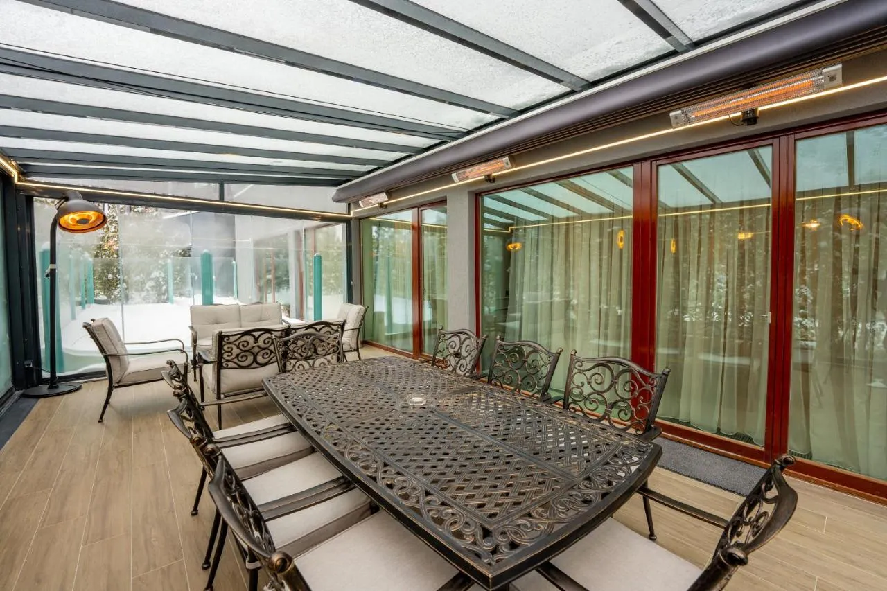 General : Seif Pardoseală de lemn sau parchet Hipoalergică Intrare privată Încălzire Aer condiţionat Izolare fonică Media/Tehnologie: TV cu ecran plat TV Canale prin cablu Bucătărie: Cuptor Cuptor cu microunde Ustensile de bucătărie Produse de curățenie Mașină de cafea Masă Frigider Plită de gătit Bucătărie Scaun înalt pentru copii Vedere: Vedere la munte Vedere la grădină Exterior: Mobilier de grădină Patio Terasă Balcon Zonă de luat masa în aer liber Zonă de living: Zonă de relaxare Canapea Șemineu Zonă de luat masa Baie: Articole de toaletă gratuite Toaletă suplimentară Hârtie igienică Cadă Halat de baie Prosoape Papuci de casă Uscător de păr Prosoape/lenjerie de pat contra cost Toaletă Baie suplimentară Duş bideu Baie privată Facilităţile camerei: Pat pliant Priză lângă pat Dormitor: Lenjerie de pat Dressing Garderobă sau dulap Activităţi: Saună Accesibilitate: Etaje superioare accesibile cu liftul Caracteristicile clădirii: Apartament privat în clădire Mâncăruri și băuturi: Aparat pentru prepararea de ceai/cafea Minibar Curățenie și dezinfectare: Dezinfectant pentru mâini