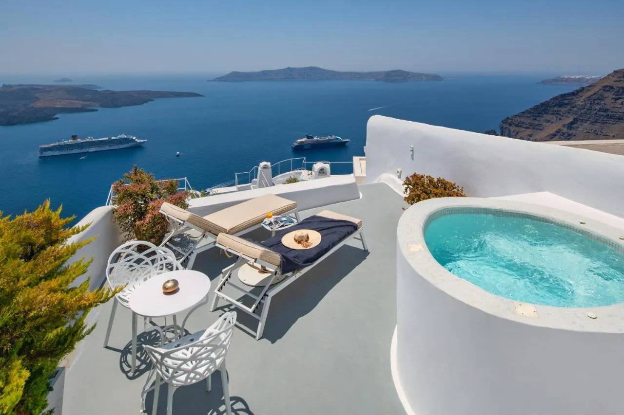 Situata chiar pe Caldera, la o plimbare de 5 minute de Fira, Ananda Infinity este o vila construita in stil traditional, care se lauda cu 3 terase cu vederi uimitoare asupra Caldera si vulcanului. Terasa superioara are un jacuzzi in aer liber, in timp ce pe locatie se afla si o curte confortabila cu masa de luat masa si un maslin.