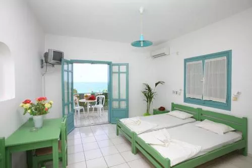 Dimensiuni: 18 mp Numar de camere: 4 camere Just 20 metres from Hersonissos Beach, this traditionally decorated studio opens out to a balcony or patio enjoying views over the Cretan Sea, the pool or the garden. It includes a kitchenette with dining area. Baie privată cu duș