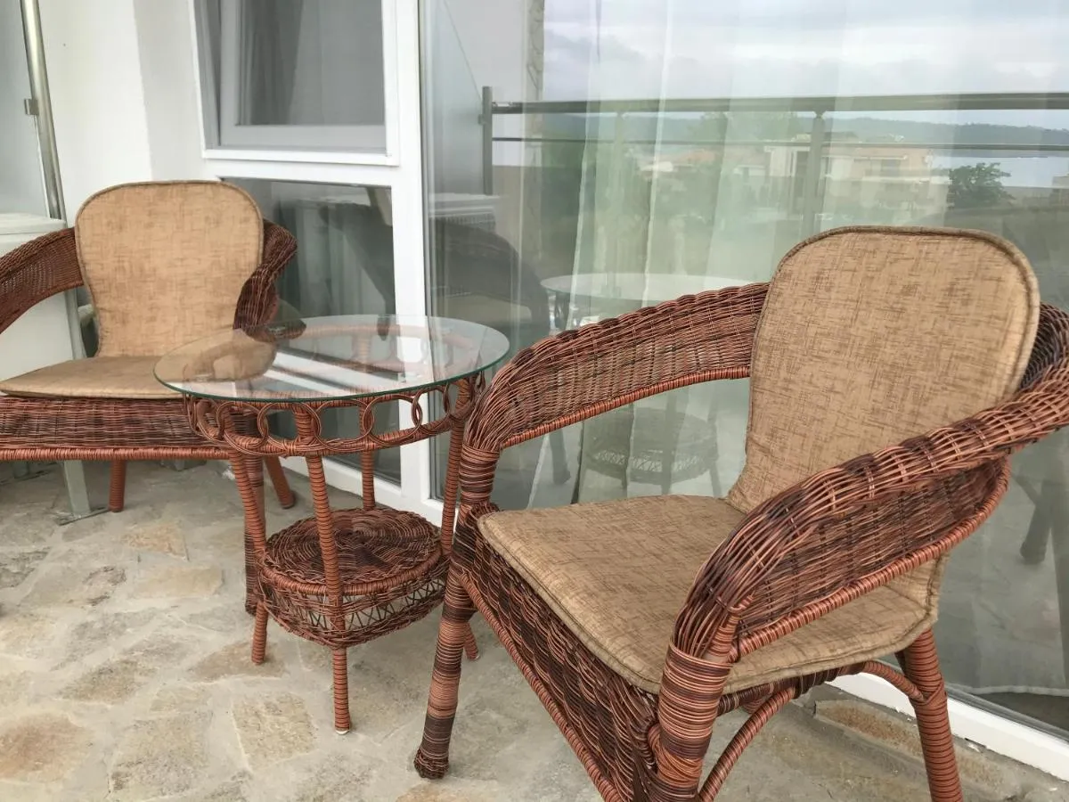 Dimensiuni: 50 mp Numar de camere: 1 camera Featuring a private entrance, this air-conditioned apartment comprises 1 living room, 1 separate bedroom and 1 bathroom with a shower and a hairdryer. The apartment's kitchenette, which features a refrigerator and an electric kettle, is available for cooking and storing food. Boasting a terrace with sea views, this apartment also provides soundproof walls and a flat-screen TV with satellite channels. The unit offers 2 beds.
