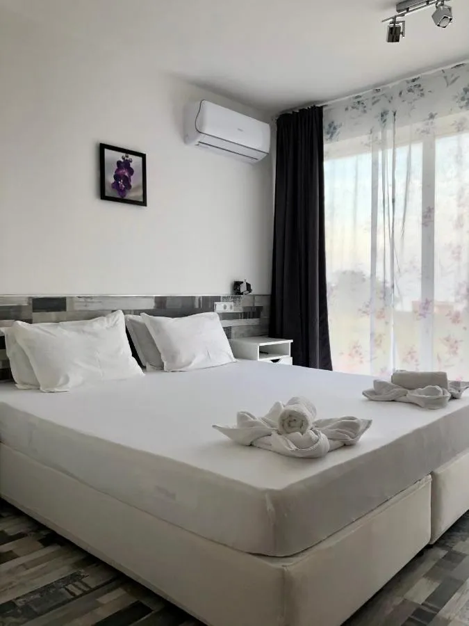 Dimensiuni: 25 mp Numar de camere: 1 camera Această cameră dublă are aer condiționat, TV cu ecran plat și canale prin satelit, baie privată și terasă cu vedere la mare. Unitatea include 1 pat.