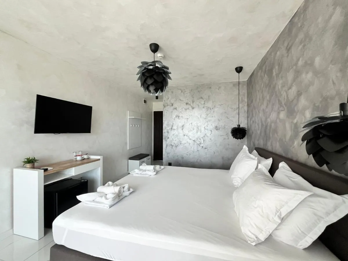 Dimensiuni: 25 mp Numar de camere: 1 camera Providing free toiletries, this double room includes a private bathroom with a shower and a hairdryer. The air-conditioned double room provides a flat-screen TV with satellite channels, a private entrance, soundproof walls, a minibar as well as sea views. The unit offers 1 bed.