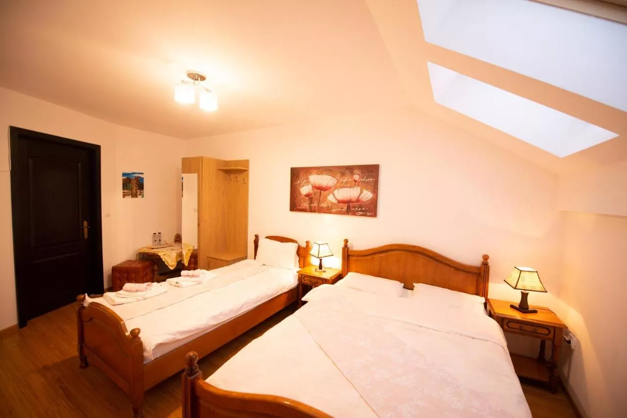 Dimensiuni: 12 mp Numar de camere: 1 camera Providing free toiletries and bathrobes, this triple room includes a private bathroom with a shower, a hairdryer and slippers. The triple room features parquet floors, a seating area with a TV with cable channels, a private entrance, a dining area, as well as a wardrobe. The unit offers 2 beds. Baie privată cu duș