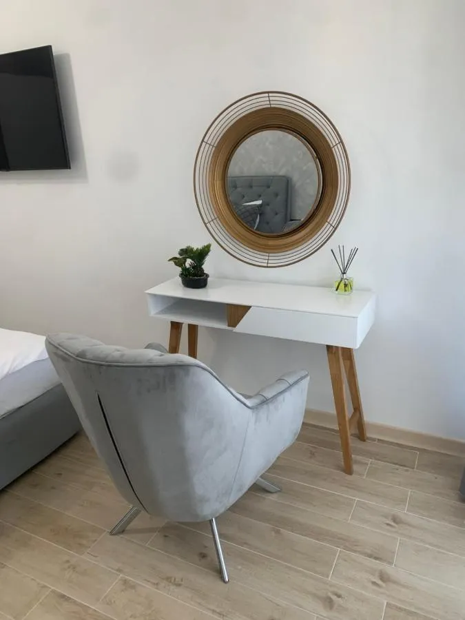 Dimensiuni: 55 mp Numar de camere: 2 camere Guests will have a special experience as this apartment features a pool with a view. This apartment includes 1 living room, 1 separate bedroom and 1 bathroom with a shower and free toiletries. The apartment's kitchen is available for cooking and storing food. The air-conditioned apartment offers a flat-screen TV with cable channels, a washing machine, soundproof walls, a wardrobe as well as sea views. The unit has 2 beds.