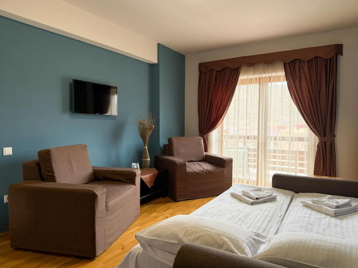 Dimensiuni: 25 mp Numar de camere: 1 camera Această suită are 1 living, 1 dormitor separat și 1 baie cu duș și articole de toaletă gratuite. Suita oferă dulap, canapea, TV cu ecran plat cu canale prin satelit și balcon. Unitatea include 2 paturi.