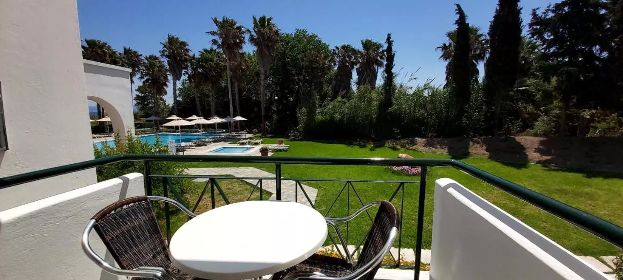 Dimensiuni: 39 mp Numar de camere: 1 camera Featuring a separate bedroom, this air-conditioned apartment comes with a spacious balcony overlooking the Aegean Sea, the pool and the garden. It includes a well-equipped kitchenette with dining area, fridge and microwave, and a private bathroom with bath tub. A safe and a TV with satellite channels are available.
