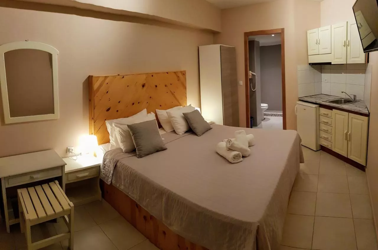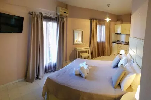 Apartamentele de la Hotelul Anemos sunt luminoase și au aer condiționat. Acestea includ o chicinetă bine echipată cu frigider și o zonă de luat masa. Toate camerele au, de asemenea, un televizor cu satelit și oferă vederi spre mare sau stradă de pe balconul lor.