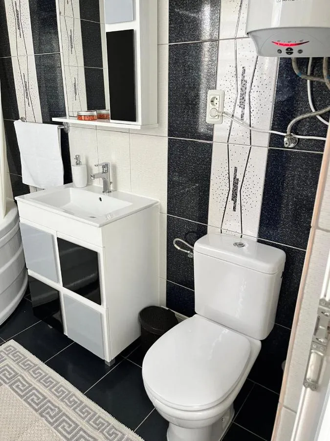 Dimensiuni: 60 mp Numar de camere: 2 camere Boasting a private entrance, this air-conditioned holiday home features 2 bedrooms and 1 bathroom with a bath. Guests will find a refrigerator, kitchenware, an oven and a microwave in the kitchen. The holiday home also comes with a barbecue. Featuring a terrace with lake views, this holiday home also features a washing machine and a flat-screen TV. The unit has 2 beds. Baie privată cu cadă