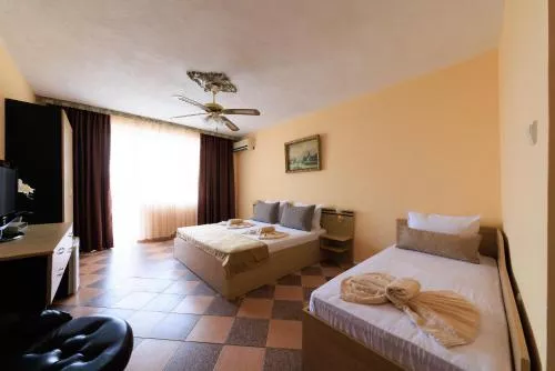 Hotelul Angy oferă o piscină în aer liber cu șezlonguri și umbrele gratuite, situat la 100 de metri de plaja cu nisip, în apropierea stațiunii Golden Sands, care se află la 1 km distanță. Centrul orașului Varna poate fi atins într-o călătorie de 10 minute cu mașina.