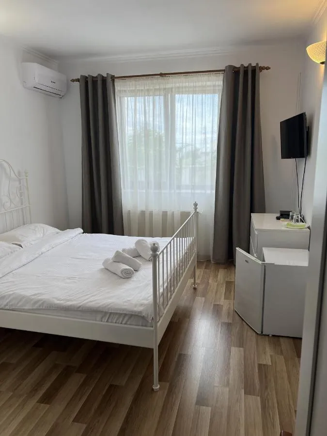 Dimensiuni: 17 mp Numar de camere: 1 camera Providing free toiletries, this triple room includes a private bathroom with a shower. Meals can be prepared in the well-fitted kitchen, which comes with a refrigerator, kitchenware and a microwave. The air-conditioned triple room provides a flat-screen TV with satellite channels, a private entrance, a tea and coffee maker, a wardrobe as well as garden views. The unit offers 2 beds.