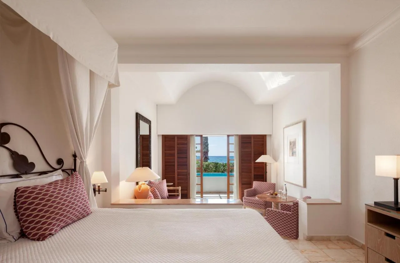 Dimensiuni: 28 mp Numar de camere: 10 camere Această cameră mai mare are paturi twin sau duble, baie din marmură, pardoseală din marmură și balcon cu vedere nelimitată la mare și la grădinile tropicale ale hotelului. Unele camere sunt comunicante. Conexiunea WiFi este gratuită.