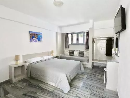 Anny Studios se află în centrul satului Perissa, la doar 30 de metri de plajă. Proprietatea dispune de o piscină în aer liber și de un bar lângă piscină. Wi-Fi gratuit este disponibil în hol.