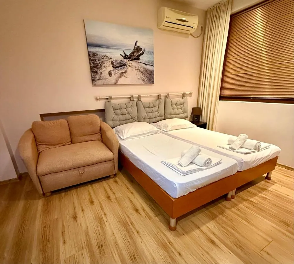 Situat în Pomorie, la 600 de metri de Plaja Centrală Pomorie, Анси dispune de o terasă, parcare la fața locului și camere cu acces gratuit la WiFi. Proprietatea se află la aproximativ 11 km de Muzeul Aviației, 17 km de Salinele din Burgas și 23 km de Action AquaPark. Opera din Burgas este la 22 km de apartament, iar Gara Centrală Burgas este de asemenea la 22 km distanță.