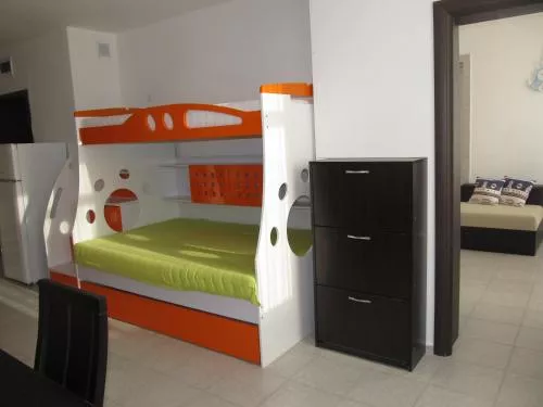 Dimensiuni: 70 mp Numar de camere: 1 camera This spacious apartment features 1 living room, 1 separate bedroom and 1 bathroom with a shower and free toiletries. In the well-fitted kitchenette, guests will find a stovetop, a refrigerator, kitchenware and a microwave. Boasting a terrace with pool views, this apartment also features air conditioning and a flat-screen TV with satellite channels. The unit has 2 beds. Baie privată cu duș